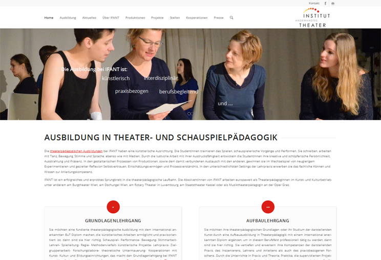 Institut angewandtes Theater Portfolioseiten, Unternehmenseiten Zielsetzung: Zur Webseite: theaterpaedagogik-ausbildung.at Fähigkeiten Konzeption, Programmierung, Suchmaschinenoptimierung, Technischer Support, Wartung Gepostet am Oktober 2015 ← TradeNavigator.CH WP-Toolbox.ch →